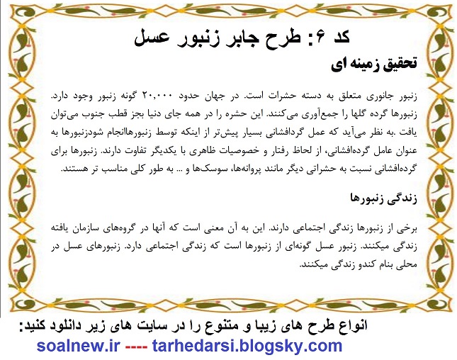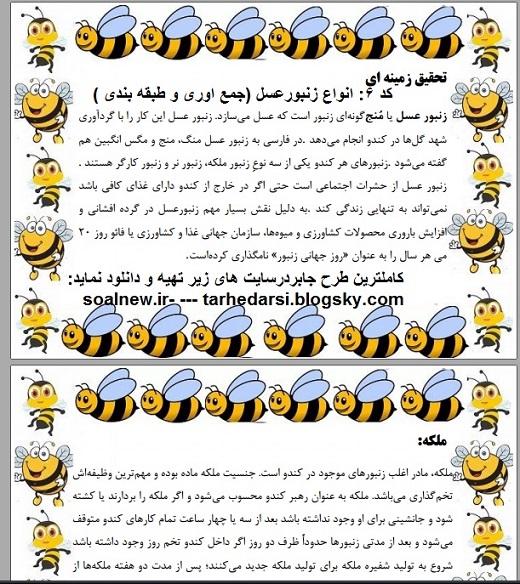 دانلود کاملترین طرح جابرحیان درباره زنبور عسل و انواع زنبور عسل:به همراه دفترکارنما پرشده ( پایه اول تا ششم)